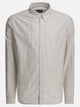 A.P.C. organic cotton "Greg" shirt, made with a striped fabric and straight-cut construction. The garment features a silhouette with slightly sloping shoulders, button-down collar with button closure and tone-on-tone A.P.C. logo embroidered on the heart. The fabric surface follows a compact structure, featuring natural materials and regular trim on the edges.