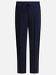 Altum stretch waist pants made with straight construction and straight silhouette. The construction features an elasticized waistband with integrated drawstring closure, promoting a functional fit. Side pockets built into the hips are integrated into the main weave without visual interruption. The leg surface is distinguished by a central ironed crease, defining the profile. The main fabric is a combination of viscose, nylon, and elastane, with a compact and uniform hand.