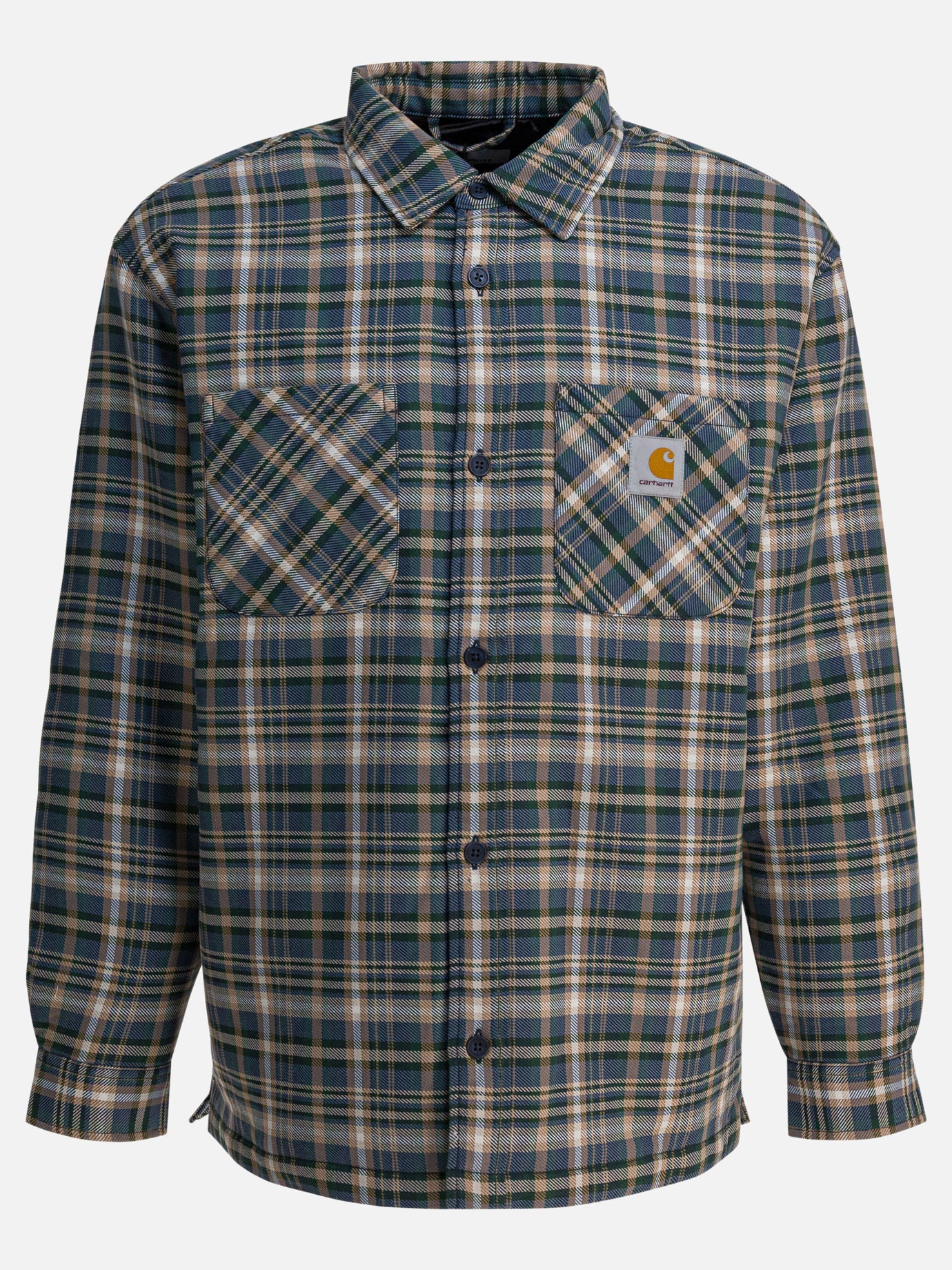 Carhartt WIP "Cronyn" overshirt jacket made of medium-weight twill, composed of 65 percent cotton and 35 % polyester. The construction features matelassé lining, a center front button closure and a wide silhouette. There are two patch pockets on the chest, two inserted side pockets and adjustable cuffs. The pattern is finished with a square fabric label applied to the front.
