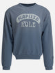 Kapital "Kapisize Rule" crewneck sweatshirt made with a crew neck construction, regular silhouette, and clean-lined construction. The main fabric provides softness to the touch, while ribbed trim on the collar, cuffs and bottom adds stability and tightness. A front graphic print creates a distinct visual element on the surface, helping to define the overall look. Long sleeves lend coverage and uniformity to the shape.