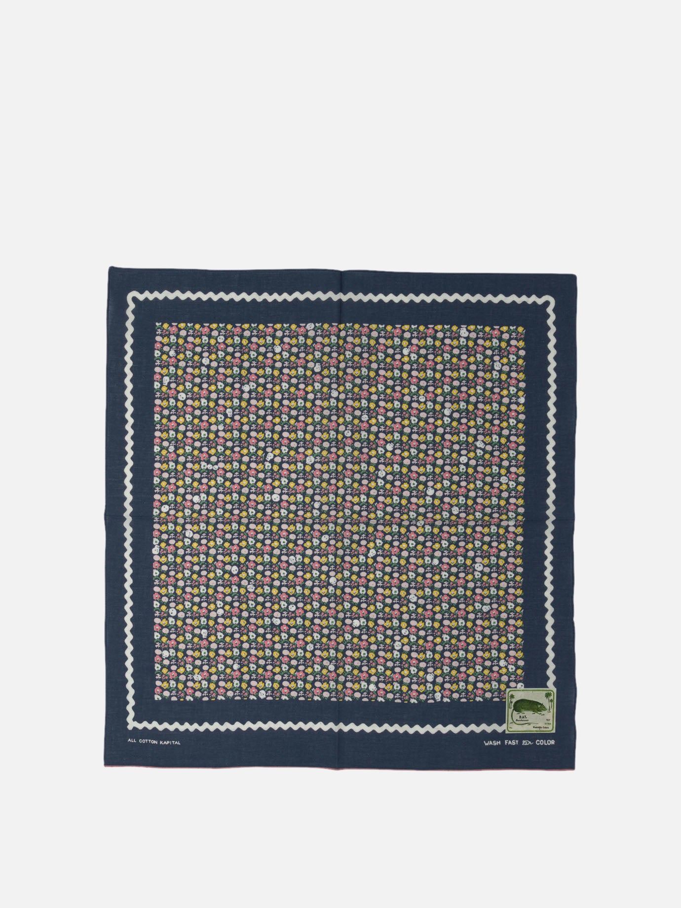 Kapital's "Skull & Flower" scarf weaves a unique visual scenario where the unexpected mixes with the classic. The striking effect of the skull motif hiding among tiny flowers creates a fascinating balance between the macabre and the delicate. This stylistic fusion catches the eye without ever losing its sobriety, making it a distinctive accessory for the man seeking a touch of originality in his wardrobe.