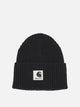 "Sacai x Carhartt WIP" Sacai cap features stretch shaved knit construction. The silhouette is defined by ribbed knitting that provides a structured fit. The turn-up hem is integrated to promote stability and coverage. The uniform texture reflects the use of compact yarns. There is an appliquéd patch on the front, highlighting the graphic identity of the pattern.