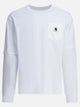 "Sacai x Carhartt WIP" Sacai crewneck t-shirt, straight-cut long-sleeved model made of tightly knit cotton jersey. It features an overlay with a Carhartt WIP duck canvas chest patch pocket and reinforced side slits with the same finish. The woven label with shared branding is placed directly on the patch pocket.