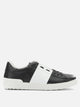 Valentino Garavani "Open" sneaker features a calf leather upper with a uniform surface and linear structure. The silhouette is rounded at the front, with a contrasting leather center band integrated into the construction. The closure is provided by flat laces, while the smooth rubber sole extends to the back, where rubber studs are applied as a functional detail. The inner lining is made entirely of leather.