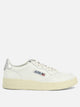 Autry's "Medalist Low Crystal" sneaker features a suede upper embellished with micro rhinestones applied with interlocking work. The construction of the shoe includes cotton flat laces, embroidery label stitched on the tongue and jacquard logo placed on the side. The collar turns out padded for additional support. The inner lining combines smooth leather and cotton terry for added comfort; the sole is rubber.