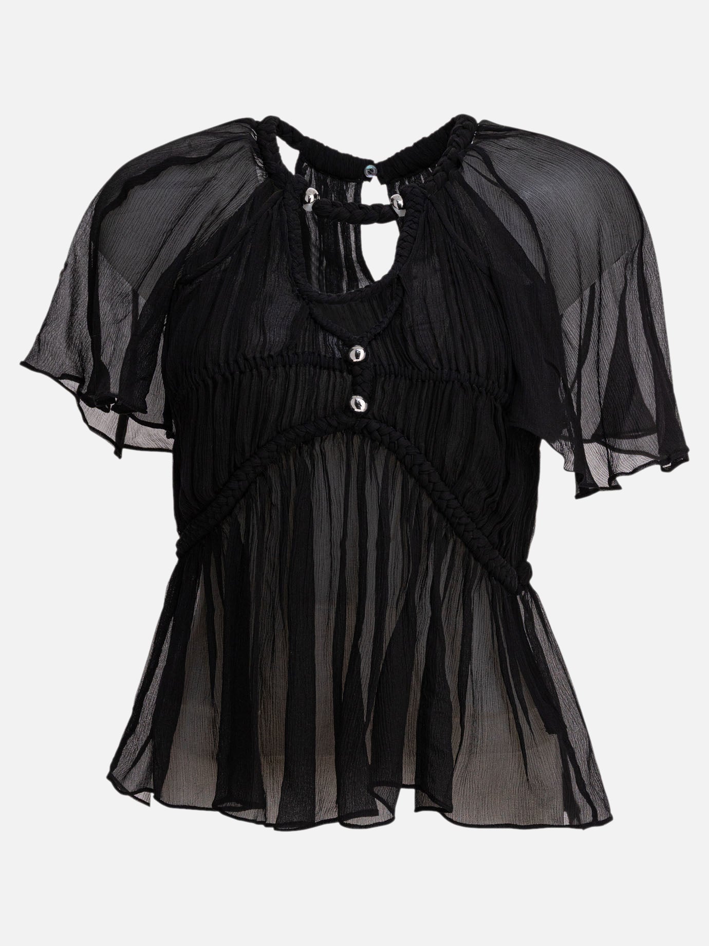 Isabel Marant's "Rosaline" top is a masterpiece of delicacy and sophisticated style. Made of fine silk, this designer piece features refined details and a timeless aesthetic. The perfect choice for the modern woman who seeks elegance and uniqueness in every occasion, this top represents the synergy between comfort and class.