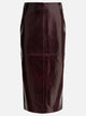 Max Mara Sportmax leather midi skirt, made of worked leather with exposed seams that define the structure of the garment. The silhouette follows a straight midi line, with a below-the-knee length. The construction features a zipper closure positioned at the back, ensuring a precise fit.