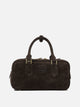 Miu Miu "Arcadie" handbag, made of aged nappa leather with matelassé processing, features a defined bowling bag silhouette and rigid structure. Featuring double handles and an adjustable and removable leather shoulder strap, it features functional details such as a zippered closure, support feet, removable leather mirror holder and cotton satin interior with zippered pocket. Front metal lettering logo completes the construction.