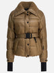 Moncler Grenoble "Bataillouse" ski down jacket made of 2L technical nylon with micro ripstop lining and synthetic padding. Collar with wool trim and front closure with zipper and snaps. The model features a removable belt, windproof gaiter and adjustable cuffs, with internal gaiters. The structure emphasizes an hourglass silhouette.