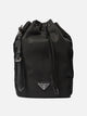 Prada's Re-Nylon handbag features a compact construction and an essential silhouette with a smooth surface. The main material is recycled Re-Nylon from the recovery of plastics collected from the oceans. The structure features a matching Re-Nylon interior and a drawstring-adjusted top closure. There is a removable smooth leather handle attached by metal elements.