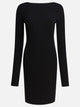 This sheath dress by Rick Owens perfectly embodies the brand's gothic and sophisticated aesthetic. Crafted from a refined viscose blend, it features sleek lines and a structure that fits the silhouette perfectly, giving it a timelessly classy feel. The long sleeves and boat neck add a touch of minimal sophistication, making it ideal for occasions when you want to stand out with discretion and style.