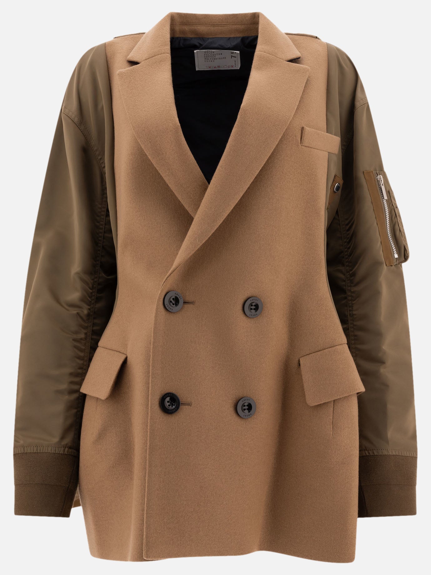 Sacai's "Wool Melton x Nylon Twill" Coat is a synthesis of elegance and comfort designed for the refined, modern woman. Featuring a refined double-breasted structure and unique details, this coat is perfect for those who desire a versatile and timeless garment. The combination of fabrics and innovative design make this coat a must-have in every woman's wardrobe.