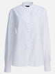 Soeur "Bermudes" shirt made of cotton fil-à-fil poplin. The construction features a straight silhouette with an oversize cut, giving the garment a broad and defined structure. The shirt features long sleeves with buttoned cuffs, a front button closure and a garment bottom hem shaped in the sartorial tradition. The textile material ensures a compact and smooth surface, free of transparencies.