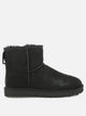 Ugg "Classic Mini II" ankle boots with inverted sheepskin and suede uppers, featuring a compact construction and streamlined silhouette. Construction features visible overlock stitching, back pull tab and nylon welt. The sole made of Treadlite by Ugg technical material provides lightweight, while the sheepskin insole ensures thermal comfort. The shaft measures 14 cm in height.