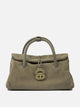 Zanellato "Dotta Jones" handbag made of suede and grained leather features a structured construction and compact silhouette. The model features rigid handles, roll-top magnet closure, tubular twist-lock buckle straps and studded details along the profiles. The interior offers a zippered pocket and lined main compartment. Adjustable and removable shoulder strap via metal hooks.